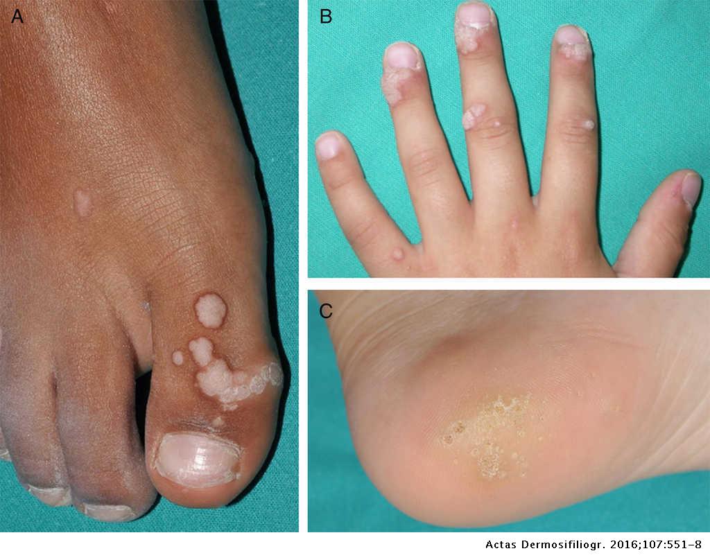 Warts (verruca vulgaris) are common skin growths caused by a viral infection in the top layer of the skin. Although there are various types of warts, the most common warts, are usually skin-colored and feel rough to the touch, but they can be dark, flat or smooth. Warts may appear anywhere on the body and are not cancerous, nor a form of skin cancer. However, if warts are in the genital area (condyloma), they can actually spread a form of wart virus that sometimes causes cancer in females.